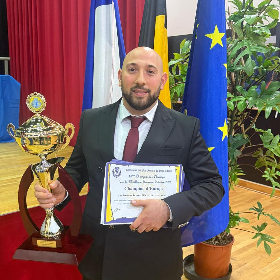 Champion de France et d'Europe dans diversses catégorie. Les Jumeaux s’imposent comme une référence de l’excellence bouchère. Une reconnaissance portée par des labels exigeants (label rouge, AOP...) et un engagement constant pour une viande halal, artisanale et sans compromis.